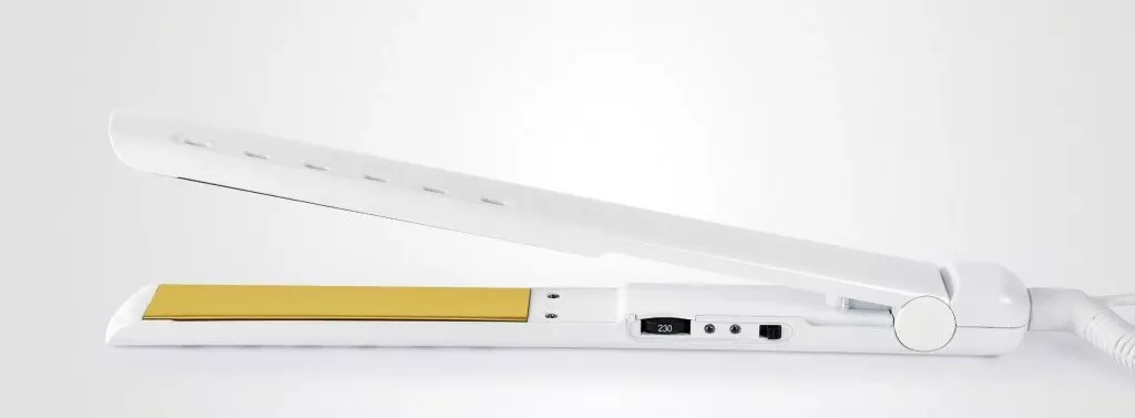 Prostownica tytanowa normalna CREATIVE IRON (kod. PBPLA42181) zapewnia regulację temperatury do 230˚C i moc 150 Watt. Wyposażona w wysokiej klasy stabilny system grzewczy, posiada ultra gładkie płyty tytanowe, które generują jony ujemne i ciepło podczerwone. Posiada funkcję odprowadzenia pary oraz wyjątkowo płaską obudowę