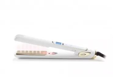 Profesjonalna prostownica ceramiczno-tytanowa z technologią podczerwieni i jonizacji sprawia, że włosy zyskują niesamowity blask i stają się zdrowsze. Umożliwia jednoczesną stylizację i pielęgnację. Ciepło promieniowania podczerwonego wnika do wewnątrz włosa i równomiernie go ogrzewa, jednocześnie zapobiegając utracie wody i wysuszeniu. Technologia jonizacji eliminuje zjawisko elektryzowania się włosów, zapewniając gładkość i połysk na długi czas. Prostownica jest wyposażona w ruchome płytki ceramiczne z technologią podczerwieni oraz płytki tytanowe o wymiarach 25 x 100 mm. Cyfrowy wyświetlacz sprawia, że urządzenie jest łatwe w obsłudze dzięki sterowaniu dotykowemu. Zakres temperatur wynosi 120-230oC, przy czym prostownica nagrzewa się w zaledwie 90 sekund. Posiada kabel obrotowy 360o o długości 3 m – to duża zaleta podczas użytkowania w salonach fryzjerskich. Moc: 45 W.