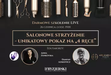 Już 26 czerwca o godzinie 19.00 na profilu facebookowym Kuriera Fryzjerskiego odbędzie się darmowe szkolenie LIVE prowadzone przez wyjątkowy duet edukatorów - Annę Zenkovską i Damiana Azikiewicza. Temat szkolenia: Salonowe strzyżenie - unikatowy pokaz na "4 ręce"