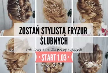 Darmowy, 7 dniowy kurs dla osób chcących wprowadzić do swojej oferty stylizację fryzur ślubnych i okolicznościowych - idealny dla wizażystów i fryzjerów, ale też dla osób całkowicie początkujących! Podczas kursu dowiesz się jak wygląda praca pełnoetatowego stylisty fryzur ślubnych, jak zorganizować swoją działalność, jak się reklamować i pozyskiwać klientki, w jakie narzędzia, produkty i akcesoria wyposażyć swoje stanowisko pracy, jak wyceniać swoje usługi a także poznasz podstawy pracy z włosami niezbędne przed rozpoczęciem nauki fryzur. Kurs jest darmowy tylko przez 7 dni od 1.03.2019!